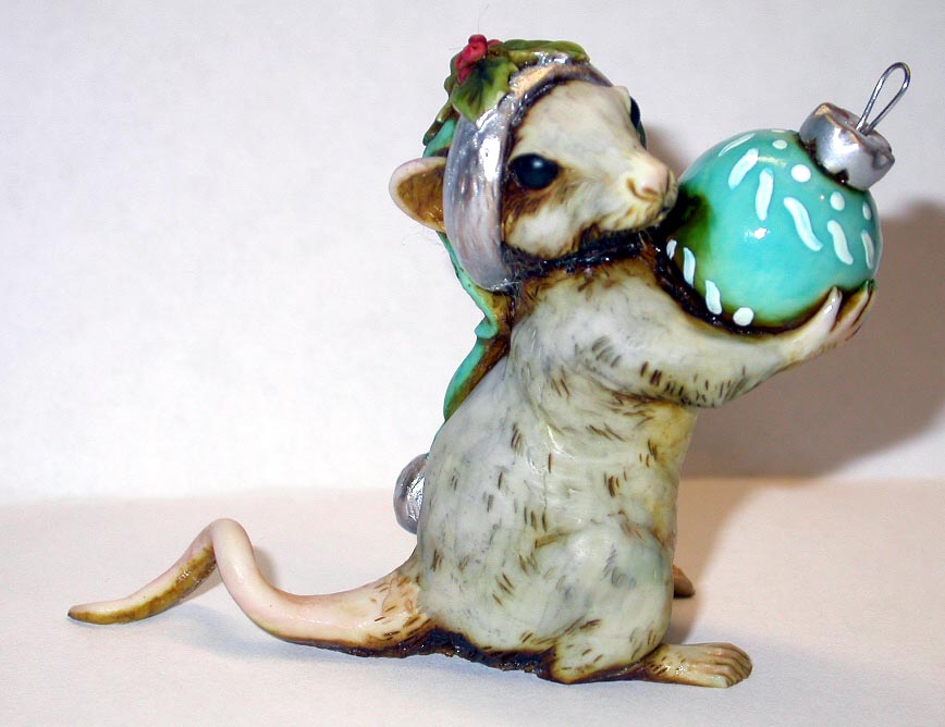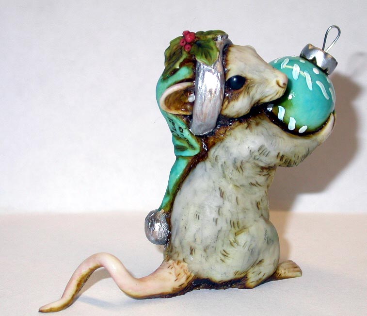 | Grey Mouse | Blue Hat Silver Trim Blue Ball with White Hand Painted Accents |